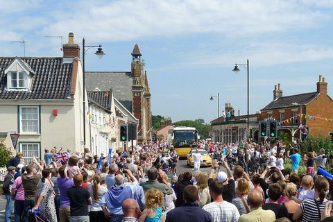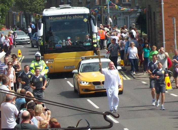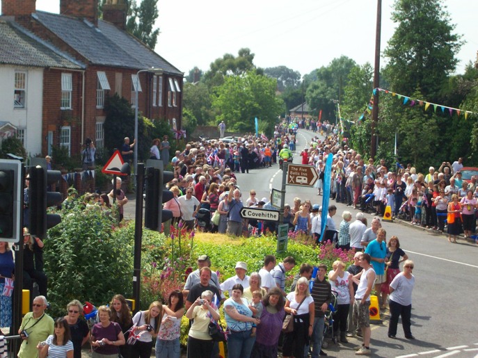 On 5th July 2012 the Olympic Torch Procession came through Wrentham. The village was decorated with bunting, flags and flowers. An influx of many people lined the streets to watch and cheer in the sunshine, including 500 children from local schools. Everyone thought it a great spectacle.